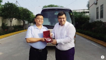 集團(tuán)董事長邵輝向?yàn)跗潉e克斯坦國家道路交通建設(shè)委員會(huì)主席贈(zèng)送上合峰會(huì)紀(jì)念品